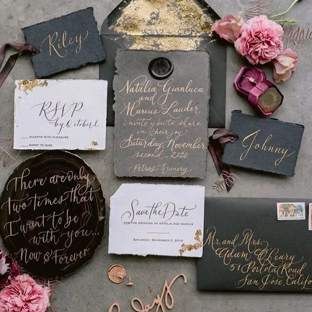Of course, these elements are not all necessary! I recommend having an invitation, response card with envelope and the outer envelope. From there, adding extra inserts as needed for your wedding scale and type is up to you. Designing, packaging, and sending wedding invitations is a major undertaking. Start with creating a guest list, map out your wedding and all events and create a stationary budget. The invitation is a guests’ first impression and creating a suite that fits the style of your dream wedding offers a cohesive look and feel.